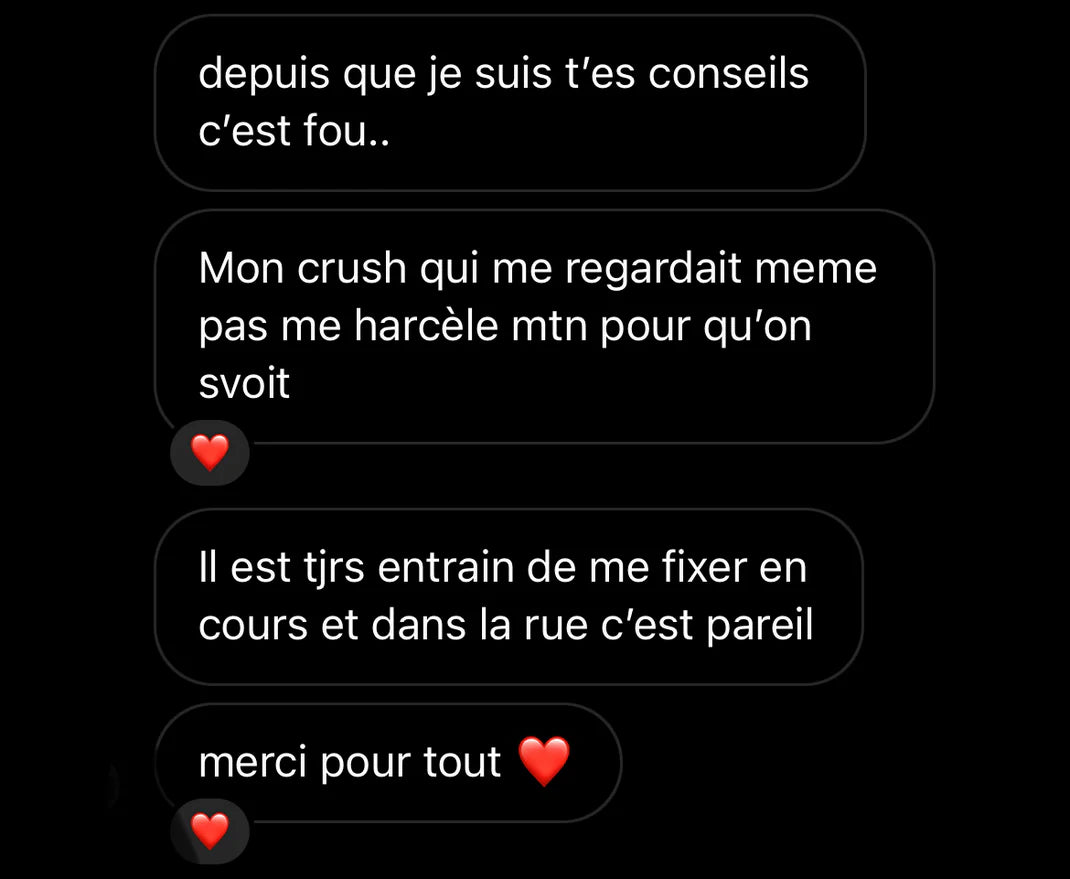 Je veux tout savoir de tes ressentis sur cette transformation et ce qui a changé dans ta vie.