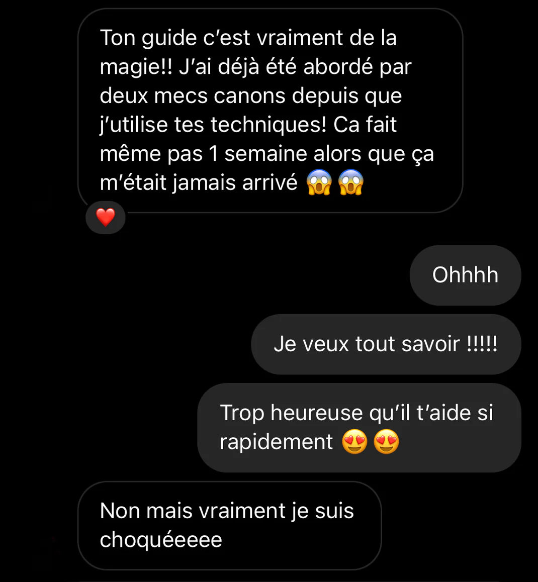 Les retours des lectrices sont incroyables et je veux que tu en profites aussi. Une fois que tu auras réussi, ta vie changera à jamais et tu m’en seras éternellement reconnaissante.