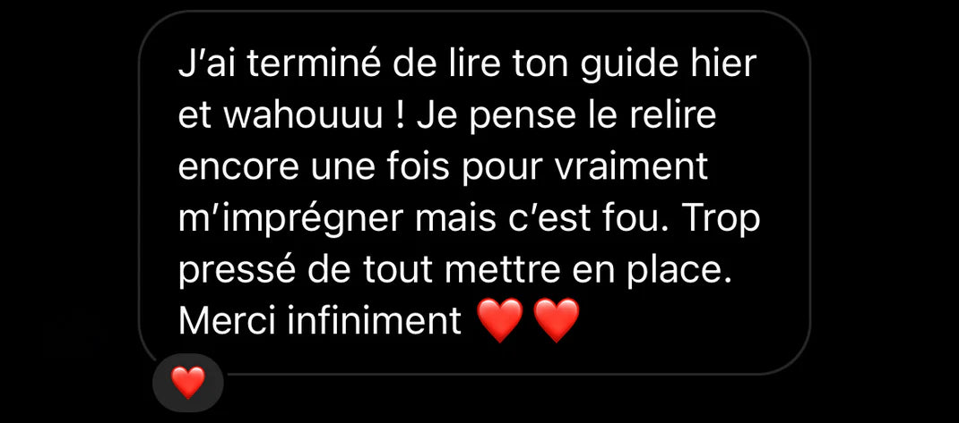 C’est ma réalité et celle de centaines d'autres femmes que j’ai accompagnées dans leur transformation via mes guides ou mon coaching. Cette vie est accessible simplement en saisissant cette opportunité dont découlera le changement le plus radical de ta vie.